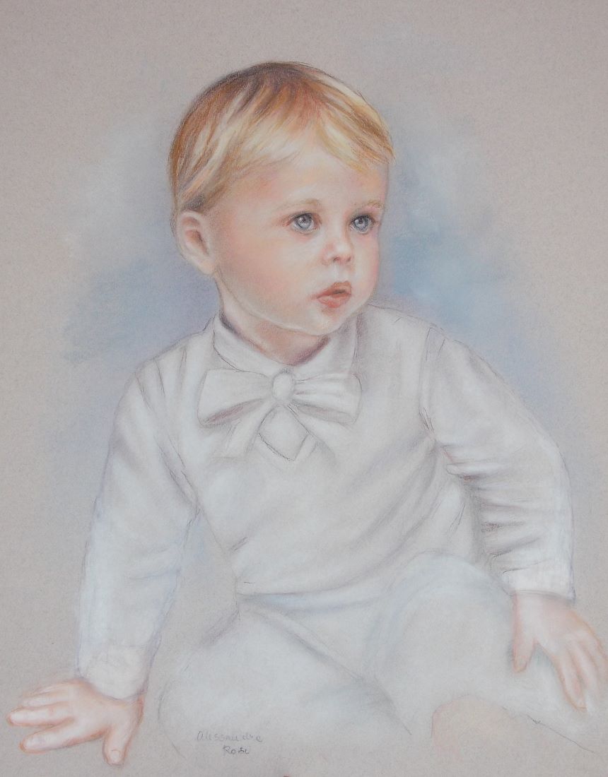 traditional portrait artist paints commissioned pastel portraits from photos of children, adults and pets