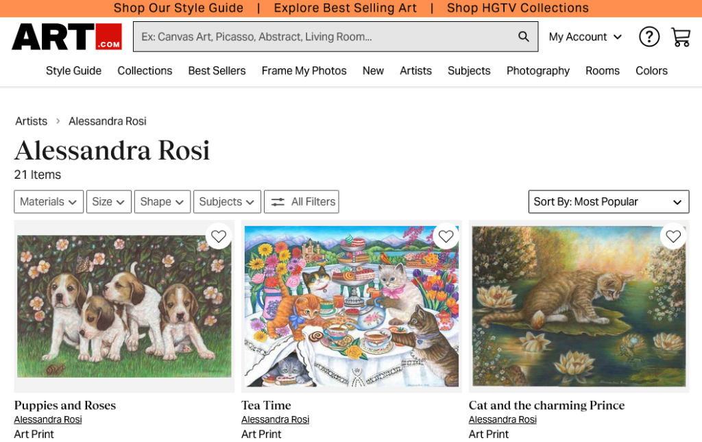 I’m happy to share that all my whimsical animals paintings are now available on Art.com as wall art, framed art, prints and much more!